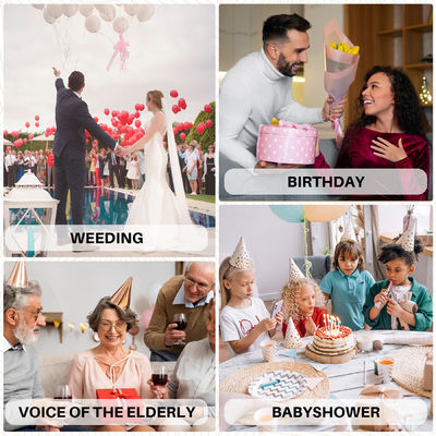 Телефонная гостевая книга - это универсальный продукт, который можно использовать в различных условиях.Его четкое качество звука гарантирует, что каждое сообщение запечатлено с точностью и ясностьюПродукт может использоваться в качестве аудио-книги гостей для свадьбы, позволяя гостям оставить свои пожелания и поздравления для счастливой пары.Он также может быть использован в качестве аудио книги гостей для корпоративных мероприятий, что позволяет участникам оставлять отзывы и комментарии о мероприятии.