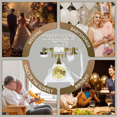 С его простой в использовании дизайн кнопки, телефон гостевой книги F01 идеально подходит для любого случая, включая свадьбы, дни рождения, выпускников, детских душ, свадебных душ, праздничных благословений,и всевозможные вечеринки.Длинный срок службы батареи 10 часов непрерывного использования гарантирует, что ваши гости могут записывать свои пожелания и сообщения без перерывов.Размер 32 ГБ карты памяти позволяет много аудиозаписейКроме того, интерфейс USB позволяет легко подключиться к компьютеру, чтобы управлять аудиофайлом.что делает телефонную книгу гостей F01 универсальной и удобной телефонной книгой гостей для свадеб и других мероприятий.